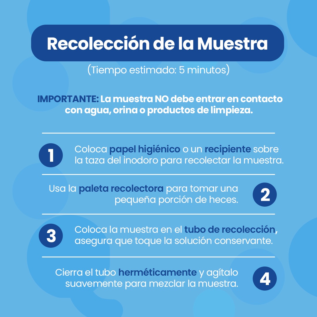 Toma tu muestra de materia fecal utilizando nuestro kit especializado para recolección